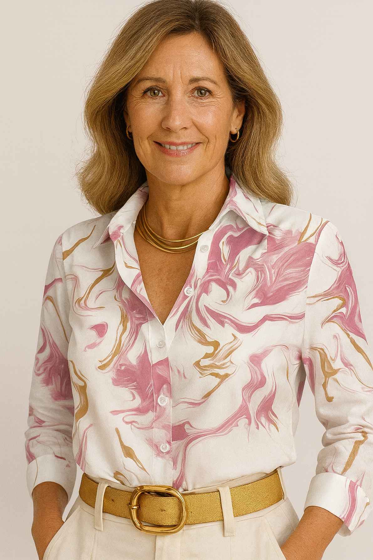 Blusa manga larga con estampado floral rosa